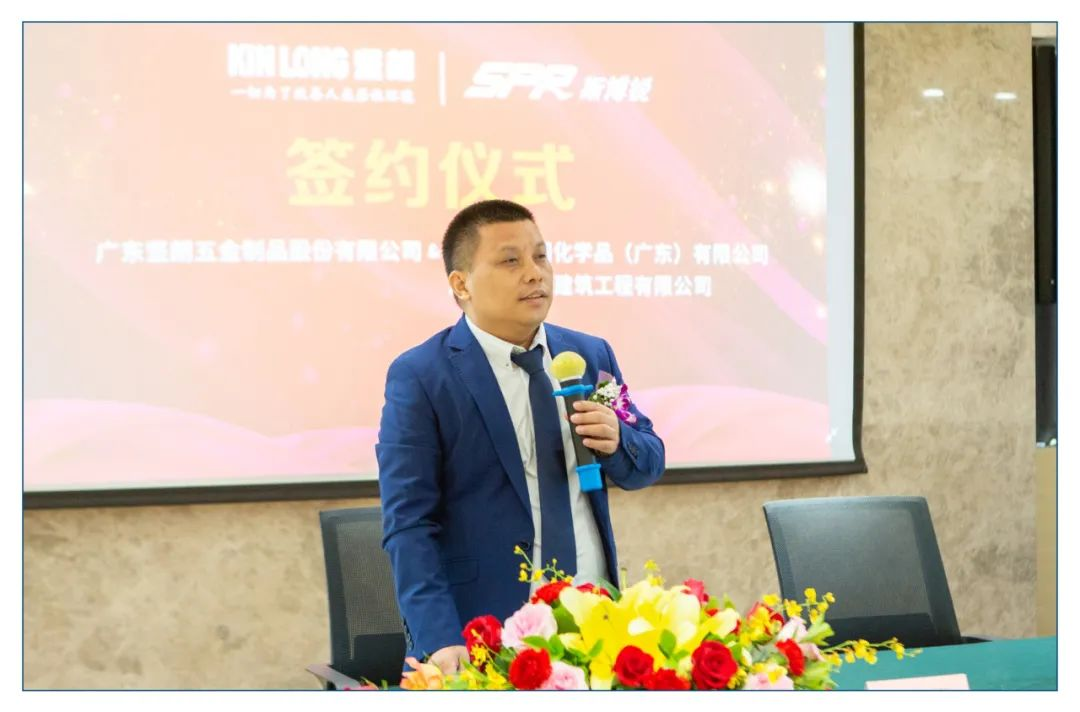 近日,斯博锐精细化学品(广东)有限公司(以下简称“斯博锐”)与广东坚朗五金制品股份有限公司(以下简称“坚朗五金”),双方领导在坚朗五金总部正式签约。