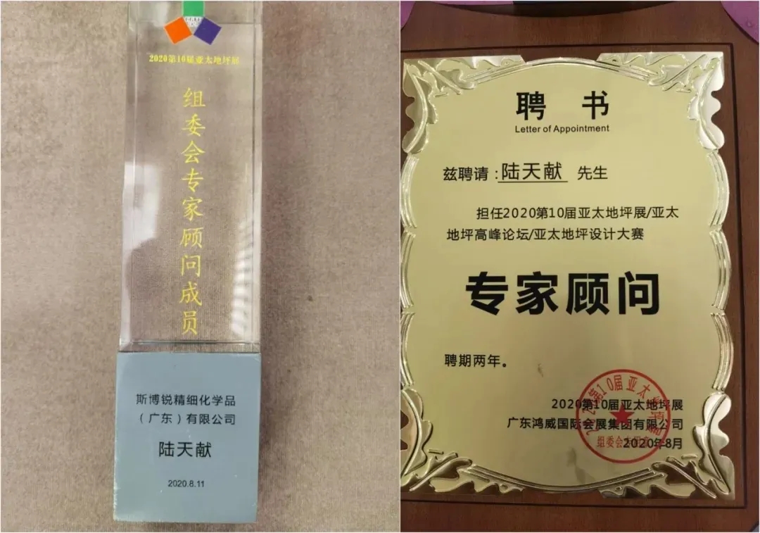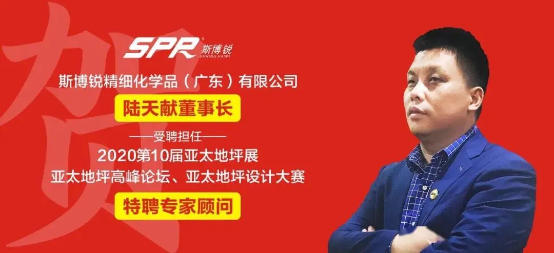 斯博锐精细化学品(广东)有限公司董事长陆天献先生受到“2020第10届亚太地坪展、亚太地坪高峰论坛、亚太地坪设计大赛”组委会的诚挚邀请,担任本次地坪盛会的特聘专家顾问,为本届亚太地坪展及相关活动提供行业发展趋势、市场运营分析、国际前沿技术及地坪新产品应用等相关咨询指导工作,成为本届展会的有力保障。